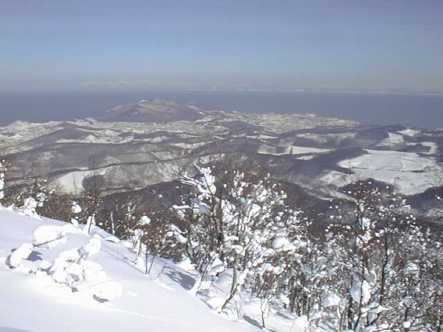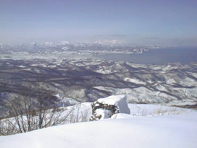 目前には日本海が雄大に広がり、天気が良ければ暑寒別・積丹岳が望め、背後には後志山の山頂も顔を覗かせています。