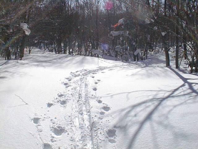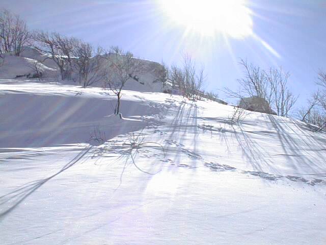 風や日射の影響を受けにくい、北東斜面のこの下りがいかに快適かは、左右の写真を見ていただければ一目瞭然!。余計な解説の必要などありません。