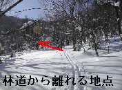 ツアー尾根を離れてからも、林道を快適に直滑降。全く藪こぎせずに降りられました。
