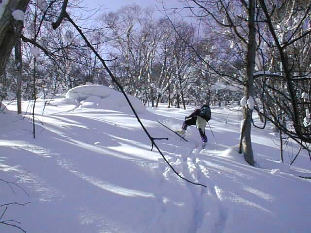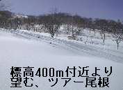 ご覧のように、これだけ低い標高から、ツアー尾根にはこのような疎林の良いスロープが広がっています。