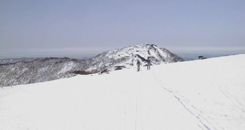 但し途中、通称”飛行場”と呼ばれる森林限界を越えた台地を通りますので、視界の利かない時はご注意下さい。また視界が利かないと、白井岳への吊り尾根への降り口も分かりません。降り口を間違うと雪庇を踏み外しかねないので、視界の利かない時は無理をしない方が無難です。