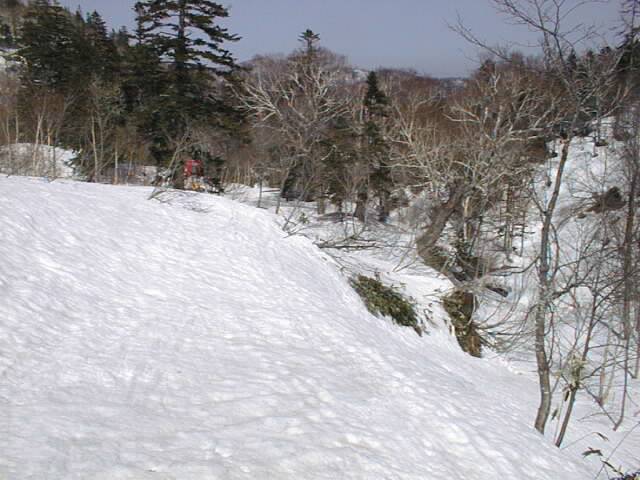 この吊り尾根はご覧の通り細く、ハイ松が出ているなど、スキー向きとは言えません。でもここから白井川源頭に向かっては、標高差こそ約150m程度と少ないものの、良い斜面が広がっています。