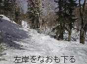 朝里岳沢が下まで雪で埋まっていて、スキー場キャビン起点へ容易に渡れる厳冬期は、右岸を下る方が降りやすいと思います。(今回は確認してませんが)