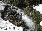 4月中旬のこの日は、標高800m付近から沢が顔を出していたため、左岸の台地をトラバースしながら下りました。
