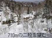 今回は標高710mの二股直上を渡渉した後、左岸を下りましたが、この日は沢沿いの雪付きが悪く、スキー場下部までは雪面が繋がっていなかったため、最後に左岸の斜面を標高差40mほど登って、スキー場のダウンヒルコースに出ました。