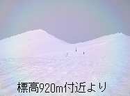 シャクナゲ岳本峰の取り付きまでは、だらだらと緩い登りが続きますが、本峰へは、短いながら急な登りがあり、クラストしていることが多いので、担いだ方が楽でしょう。