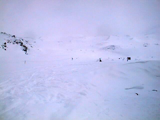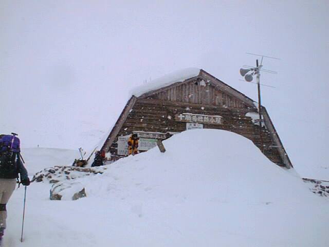 望岳台から避難小屋までは昔リフトがありましたが、現在は撤去されています。その元ゲレンデ跡の極緩い斜面を避難小屋まで登ります。登り始めから森林限界ですので、視界の悪いときは無理に登らない方が賢明です。
