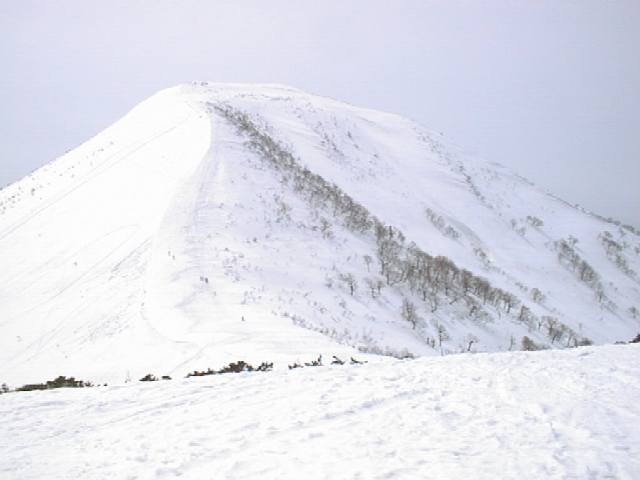 ほとんど標高を稼ぐことなく飛行場を過ぎると、キレットと言うちょっとした下りがあって、余市岳の大きな山容が間近に望めます。