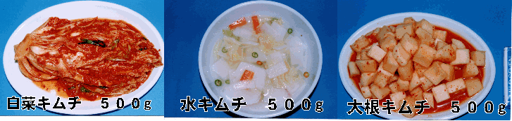 白菜キムチ、水キムチ、大根キムチそれぞれ1袋500gです、2袋以上でご注文ください。