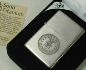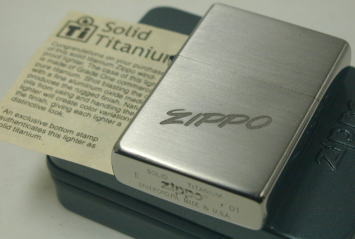 ※Zippo Solid Titanium純正ベースモデル、黒のベッチンケース入り。