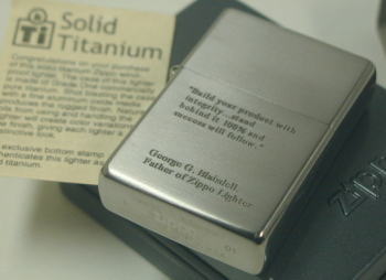 チタン無垢のパワーがジッポーを変えます。写真はサンプルボトムです。
