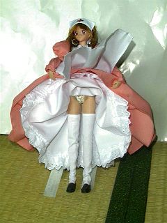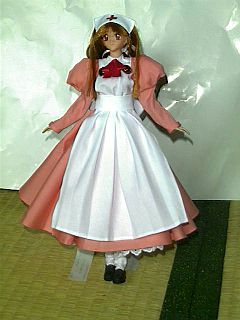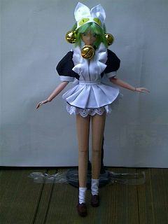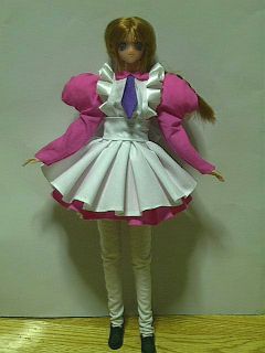 鈴つきメイド服としては非常にポプュラーでこの作品が出る前に、私もまったく同じデザインを作っていたほどに人形服屋にとっては普通の服にょ。