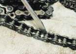 | ついでに・・・ タイヤを注文したついでに、チェーンも注文しました。それまで使っていた物はかなり伸びていて、しかも場所によって伸び方が違うのでチェーンテンショナーで調整しても上手く行きませんでした。タイヤ同様に「使いすぎ」だったみたい・・・。 以前はどうだったか知りませんが、現在チェーンは長い物を販売店が切って売る様になっています。私は今回、緊急事態で店に行ったのでモトラのリンク数は知りません。まあ、いつもの様にどうせなら自分でやろうと思い、店のオッチャンに「チェーンカッター無しで切断するには?」と問うた所、「ジスクグラインダ持ってる?それで削るんだよ。」との事。普通そんな物持ってねぇよ!と思いましたが、幸い私はジュジァーロのデザインと聞いて衝動買いした奴を持っており、何とかなりそうな気配。しかし、アレは強烈な音がするし、イタリア人サイズなのか大きくて持ち辛いしで、殆ど使ってないんだよな・・・。 結局、結論を言いますと、例の唯一のスナップオンをチェーンの隙間に突き立て、プラハンマーでガンガン叩くという一番簡単にして乱暴な方法で解決出来ました。ただ、新品のチェーンはドライバーを突っ込めるだけの隙間が無いので、一寸苦労しますが。 |