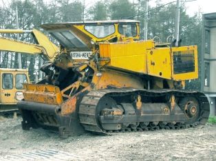 | わーい。メンクだメンク。 子供の頃、ガッチャマンに出てくる敵の作業車(?)が好きでして、オープニングでドリルで同士討ちになる場面なんかゾクッときたものですが、何故かこのメンクには似たものを感じます。これに蟹みたいな腕が付いていればデザイン的に完璧なのになぁと思ったりします。現実のところは、イカした可動部が無いので建機マニアにはパンチ不足かもしれませんけど。 撮影場所には10台くらいありました。その半分は部品取り用なのか、空襲にでも会ったかの様にメカが剥き出しになっていて面白い光景でした。向かいの「しいたけ飯店」で「しいたけラーメン」を食べた後鑑賞しましょう。 なお、こういう車を本当は「スクレープドーザ」と呼ぶそうです。スクレーパーとブルドーザーを合わせた、そのまんまのネーミング! ちなみに、通称「メンク」は、これを作っているドイツの重機メーカーの名でして、「日車・メンク」とは「三菱・ユンボ」みたいな呼方だと思っておけばよいでしょう。現在も日車が受注生産しているみたいです。 |