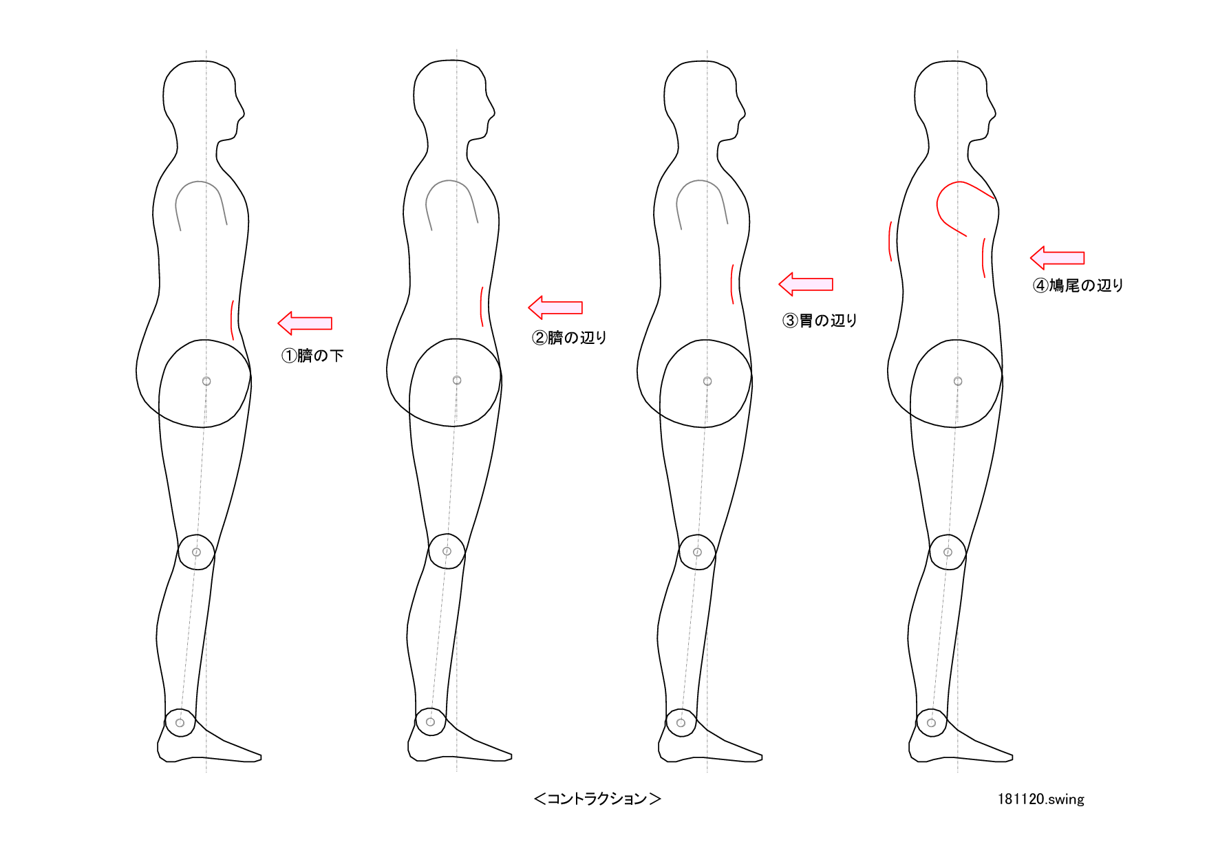 ラテンでは、上体の各部を凹ませる動作をするとのことです。これをコントラクション