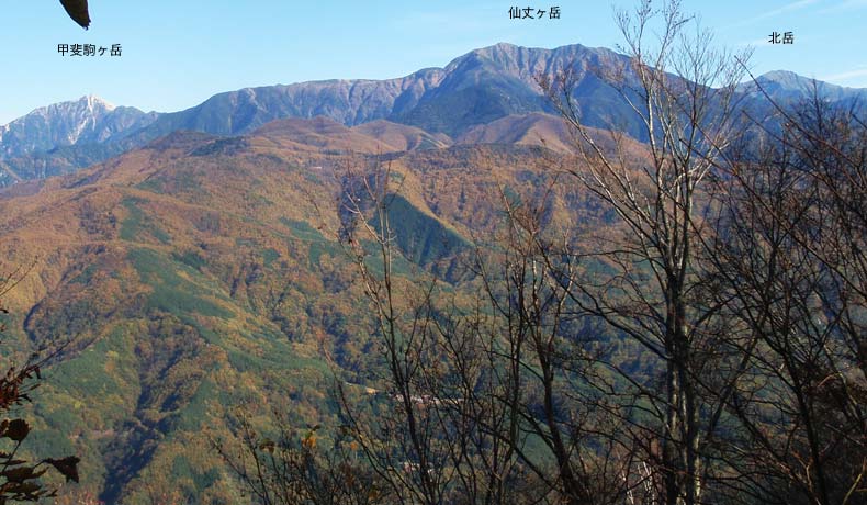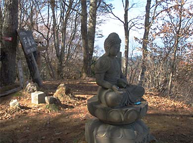 西峰から10分ちょっと歩くと石仏のある東峰に出ました↑。東側正面は南アルプスの仙丈ヶ岳です。