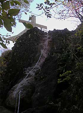 ↑妙義神社の山門(?)神仏混淆というのでしょうか。以前よく歩いた高尾山を思い出しました。←妙義神社登り口から見た白雲山。道を間違えたついでに円内の「大」の字の岩まで行ってきました。 |