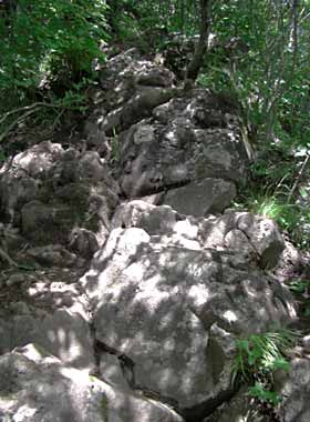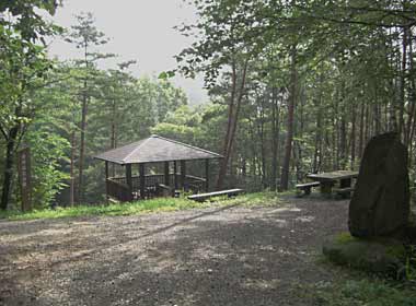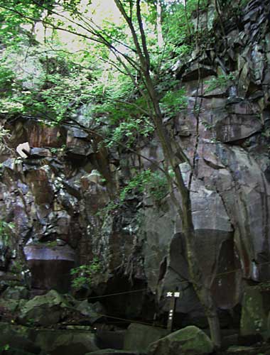 2007年7月はほとんど雨か曇だったため、8月1日に7月分の山歩をしました。 山梨県の茅ヶ岳(かやがたけ)は「日本百名山」で有名な深田久弥氏が亡くなられた山として知られています。 右は登り口の「茅ヶ岳深田記念公園」。右端は「百の頂に百の喜びあり」の筆跡が彫られた石碑。 そこからしばらくは、荒れた林道といった感じの広い道をゆるやかに登ります。 道が細くなり傾斜もやや急になって「女岩」という岩壁の前に出ました↓。 岩の下から水が湧き出していて飲めるようになっています。 |