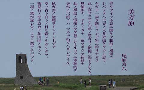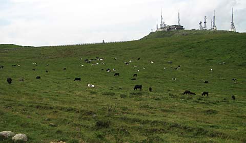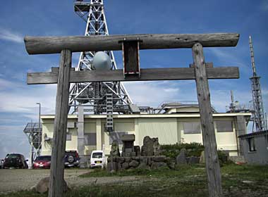 ↑美ヶ原へは牧場の中を抜けて行く平らな道なので、これも逆に美ヶ原から来れば楽に茶臼山に立てる──ということで、ケーブルカーの脇を歩いて登ったような感じもします。あまり交通が便利になるのもつまらないですね。 |