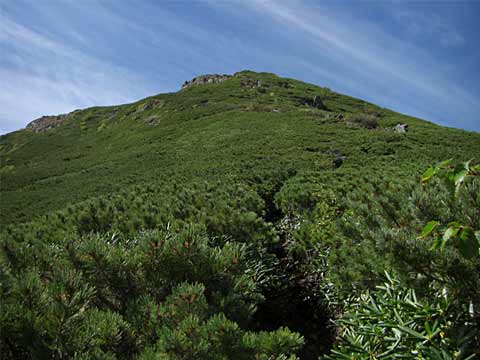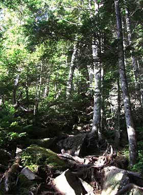 9月ということで林内にはキノコがあちこち見られますが、食べられるものかどうか判りません。だいぶ厭きた頃、林の様子が変わって、倒木が多くなってきました→。 このあたりは気象条件が厳しく樹木は長生きできないようです。 |