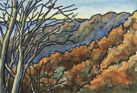 ←林は殆ど落葉しましたが、まだ遅い紅葉も見られます。ようやく上日川峠に着いてみると、反対の初鹿野(はじかの)側からは車がはいれるようで、たくさんのタクシーやマイクロバスなどが置いてありました。 この日は連休明けなのですが、大菩薩峠は小説で有名なのか、半分観光地のように人が集まるようです。 左下は峠と唐松尾根の分岐への道から上日川峠を振り返ったところ。 下は唐松尾根道と大菩薩峠道の分岐点にある「福ちゃん荘」。 だいぶ昔の話ですが、連合赤軍という団体がここに泊まり、警察の機動隊が踏み込んだ事件があって有名になりました。 |