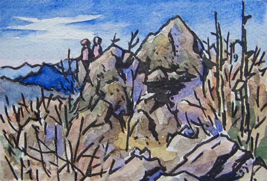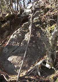 ↓山頂が近づくと岩の道になり、ロープが下がっていたりしますが、特に使わなくても上下できます。 ![]() ↑石仏の立つ山頂。お地蔵さんは手編みの毛糸の帽子やセーターを着ています。 |