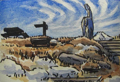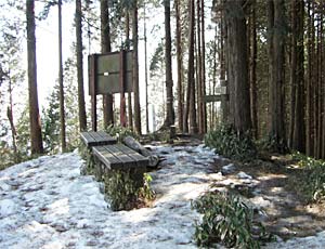 ←陣場山山頂。陣馬山とも書くので、馬の像があるようです。 何度か来たのに、誰が作ったのか、つい見落として、今回もまた見るのを忘れました。 馬は富士山に向かっていなないているようです。 ここから高尾山、またはその逆は東京辺からの一日ハイキングコースに適当なので、休日の山頂はいつも賑わっているのですが、冬の平日朝九時でもあり、ひとりの方が食事されていたきりでした。 |