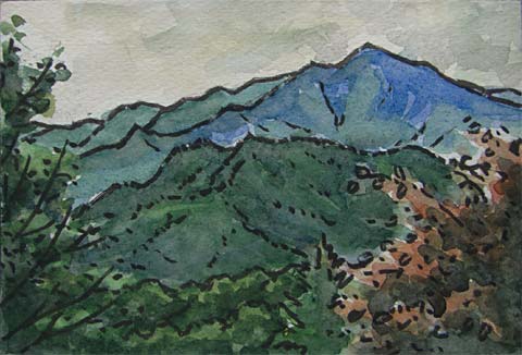藪沢峠で、柳沢峠からの斉木林道に出て、その道をゆるやかに登ります。作業用の荒れた車道ですが、ゲートがあるので車は通りません。 ↑は笠取山の下にある笠取小屋。 上右はそのへんからの国師ヶ岳の眺め。昔は奥深い山でしたが、今は山頂下の峠まで車道が出来て、一時間ほどで登れるようです。 小屋前の広場から南側に見える大菩薩嶺(右の高い所)→。 その下が鶏冠山(左に突き出たコブ)と黒川山。 |