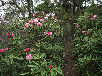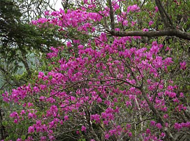 ←笠取山の手前で雁峠に寄り道しました。毎度の昔話ですが、三十数年前、左手の新地平から峠に登ったことがありました。 当時はまだ登山地図にも一般コースとしては載っていない道で、峠に近くなると踏み跡が乱れて花崗岩の崩れた砂礫地に出てしまいました。 上が雁峠とはわかっていたので、急な斜面を時々ずり落ちながら登っていくと、突然「ウォーン」といった獣の叫び声がして、続いて猟銃の発射音が二度ばかり聞こえました。 驚いた拍子に足もとが崩れて滑り落ちそうになり、あわてて近くの細い木をつかんだら、それがタラノキという棘だらけの木で、こちらも「ギャオーン」と叫んでしまいました。 笠取小屋近くに出た熊を射殺したのだと後で聞きました。 |