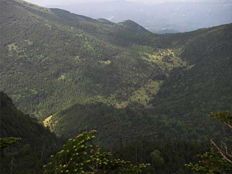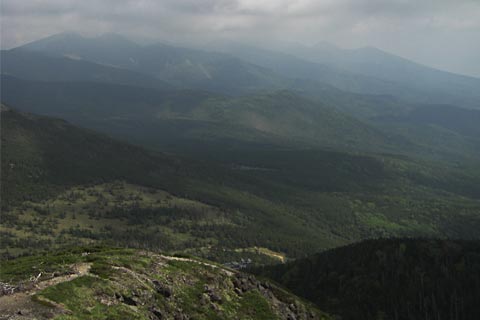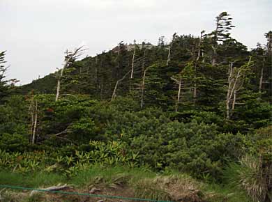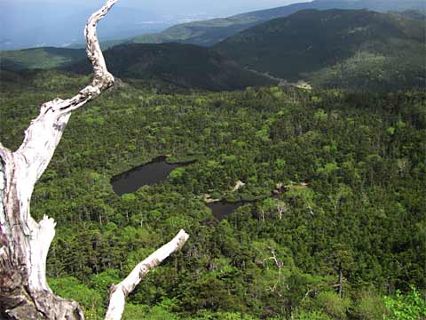 ←山頂からの雨池方面の眺め。