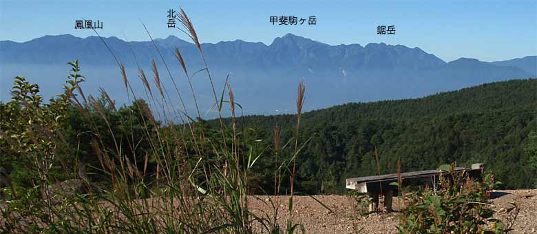 ![]() ↑10分ほど歩いた「天の河原」という園地からの南アルプスの展望。 |