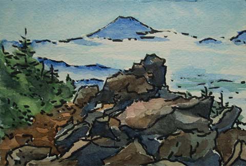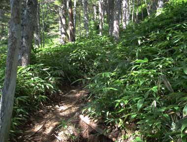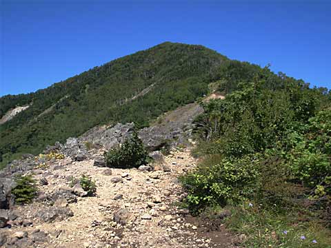 ←上のような開けた場所でよく見掛けたフジアザミ。 花の直径は5〜6センチもあります。 ちょうど開花時期のようでした。 ![]() 初めは歩きやすい道なのですが、次第に傾斜が増して浮き石がごろごろしてきて、特に下りでは石に乗って滑りやすい道になります。 |