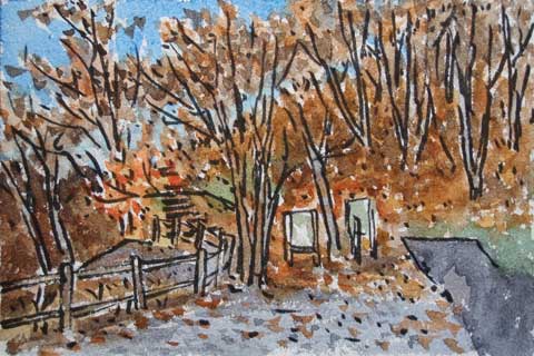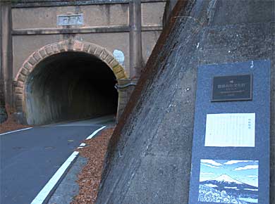 ←トンネルの左脇から御坂峠への道があります。左手の階段道を少し登ると太宰治の碑があるそうです。 |