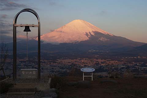 箱根火山の外輪山のひとつで、金時山と並ぶハイキングコースです。春秋には混み合いそうですが、冬の平日で静かでした。 右は足柄古道にはいる手前の「誓いの丘」という公園のような所。 以前、金時山の山歩でも通りましたが、そのときは見落としたようです。 気象学者で直木賞作家の新田次郎のすいーとな文学碑があるので、ふたりでこの鐘を鳴らして愛を誓うということでしょうか。 近頃こういう場所が増えてきたようです。 |