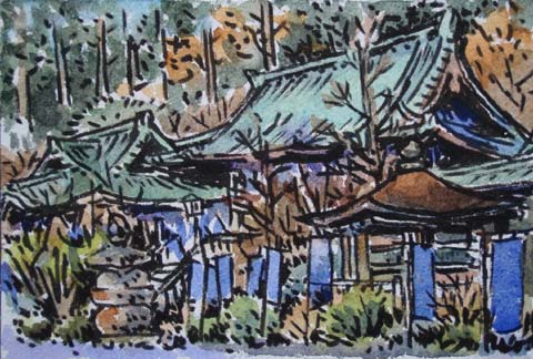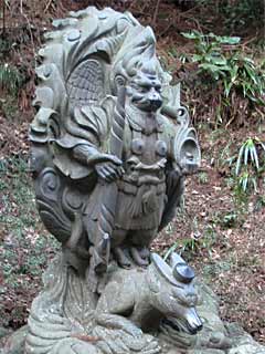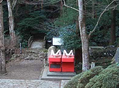↑登り口、大雄山最乗寺(だいゆうざんさいじょうじ)の瑠璃門。左手にも行けますが、寺の駐車場を借りるのでお賽銭を上げようという訳です。 上右は本堂(右)と開山堂(左)。 寺は1394年(室町時代)の創建ですが、その時代の建物は残っていないようです。 「了庵慧明(えみょう)禅師六百回大遠忌」と書いた青い旗がたくさん立っています。 右は「結界門」。 慧明禅師による寺の創建、維持を補佐した弟子の道了禅師という方が、慧明禅師の死後、天狗の姿となり「永遠にこの寺を守護する」と誓って姿を消したそうで、この中に天狗を祀る妙覚宝殿があり、道了尊と呼ばれているようです。 |