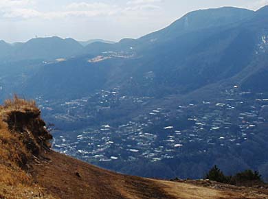 尾根の灌木や箱根笹が切れて下に箱根の火口原が見えてきました。↑手前の神山と奥が駒ヶ岳。