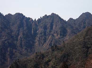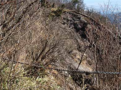 上右は枝が三叉に伸びるのでミツマタという名の灌木。中国原産で、この樹皮を和紙の原料にするため栽培されていたようですが、なぜかこの山頂にたくさんあって、ちょうど花盛りでした。→山頂は無風で暖かい日射しがいっぱいと、のどかな感じなのですが、すぐ下が演習場とあって、大砲やら機関砲やらの音が激しく、落ち着いていられません。 休日なら演習もお休みで、ゆっくりできるのかもしれません。 富士山の右手に丹沢山地、さらに右に前回山歩の箱根山が見えます↓。 |