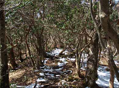 ![]() ↑富士見峠から黒岳への途中、黒岳展望広場という北側の開けた場所からの眺め。 中央下の建物などの見える所は富士サファリパークという放し飼いの動物園、その上の草原は自衛隊などの演習場です。 黒岳手前の「杉の自然木」と表示のある大木→。 黒岳は河口湖の北側にもありますが、黒木(常緑針葉樹)に覆われた山といった名前で、昔はこんな杉の森林だったのでしょうか。 ↓現在の黒岳山頂は明るい草原で、平たい鍋を伏せたような広場になっています。 古い切り株が残っているので、昔、山頂の杉が伐採されて、先の小屋はそんな作業に使われたのかもしれません。 |