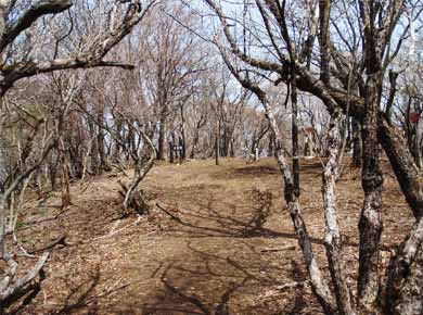 ←用木沢を離れて涸れ沢のような所を登ります。 ↓犬越路(いぬごえじ/武田信玄が小田原攻めに、犬を先立ててこの峠を越えた事に依る名前だとか)という峠の避難小屋。 小田原側の左手から来ましたが、右に下りると信玄の山梨県道志村です。 うしろは桧洞丸(ひのきぼらまる)方面、大室山は前の小屋の右脇を登ります。 ![]() |