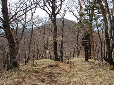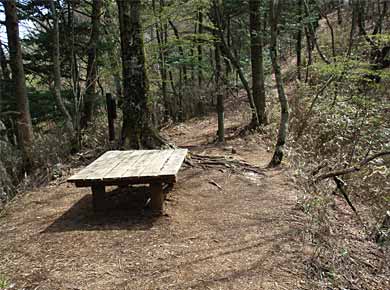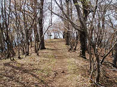 山頂はゆったりと広いものの、樹林に囲まれて展望はありません(下左)。