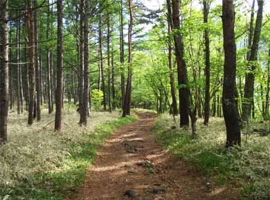 ↓初めの少しの間は、散歩道といった感じで、落葉松林の中をゆるやかに登ります。 ![]() 前回に続いて小鳥と道連れになりました。今度はわりと地味な色合いで、ヒガラという鳥のようです↑。 |