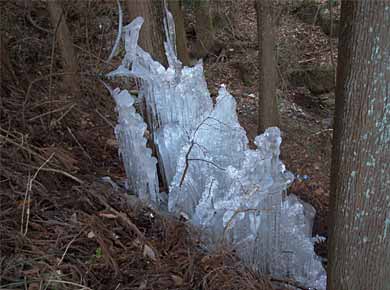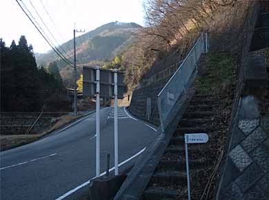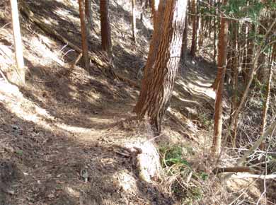 帰りにここを手前側に下りたところ、「峠道文化の森」という標柱がありました。この辺は北から桂川、秋山川、道志川が西から東に並行して流れ、三つの川を道志の山地が分けている形で、山を隔てる集落間の交通は峠を越えるのが近道だったようです。
