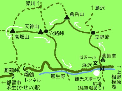上右は出発地の浜沢スポーツ広場わきの「ほたるの里」という表示。