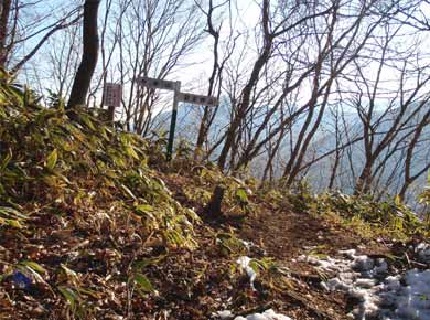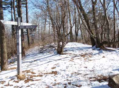 ←登り口が1000mあるので1時間半ほど登ると山頂です。山頂は林に囲まれて落葉の時期でも展望はほとんどありません。 |