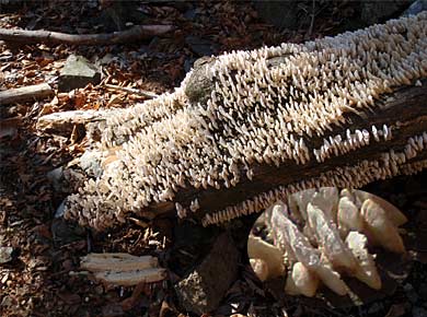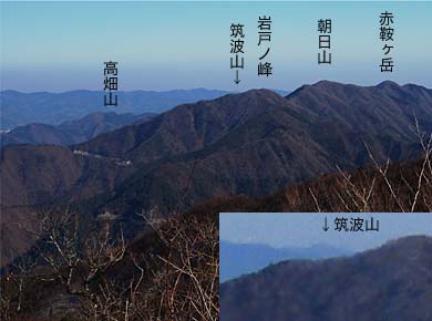 ![]() この岩の上が素晴らしい展望台で、今倉山にさえぎられる部分のほかは360度の大展望でした。↑御正体山(みしょうたいさん)と鹿留山(ししどめやま)・杓子山(しゃくしやま)が富士山の露払い太刀持ちのようです。 |