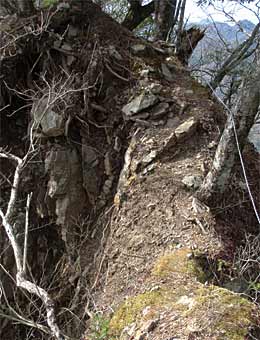 ![]() こういった山腹が急斜面の山は山頂が広く、山頂が尖った山は山腹がゆるやかというのが普通のようで、尾根上はゆったりした歩きやすい道になっています↑。 東側に富士山が見えるのですが↑、混み合った枝が邪魔しています。それでも、葉の茂る夏よりはましといったところでしょうか。 |