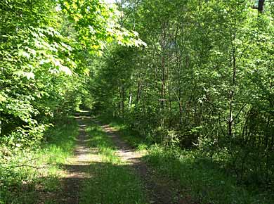 長野県南佐久郡北相木村、村営の「長者の森キャンプ場」という広いレジャー施設が出発点になります。多数のコテージやオートキャンプ場などがあり、営業中のようですが、まだシーズン前のせいか釣り人のほかは人影を見掛けませんでした。 「おぐらやま」かと思っていたのですが、登り口の案内板には「おぐらさん」とありました。 新緑の見事な林道をしばらく歩きます→。 |