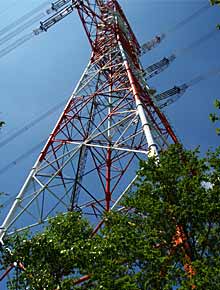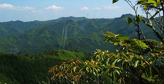 ↑東側に連なる長野群馬県境の尾根。この右手先に大蛇倉山という山があって、その東下が昔、日本航空のジャンボ機が落ちた場所になります。上右はその群馬県上野村に連なる送電線の大きな鉄塔。