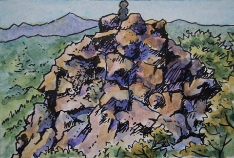 岩場で360度の展望なのですが、梅雨も近い頃で、昼をまわって湿度も上がったせいで遠景は霞んでいました。