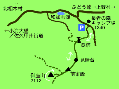 野辺山高原あたりからは目立つ山ですが、200mほどの差で急に低く見えてしまいます。